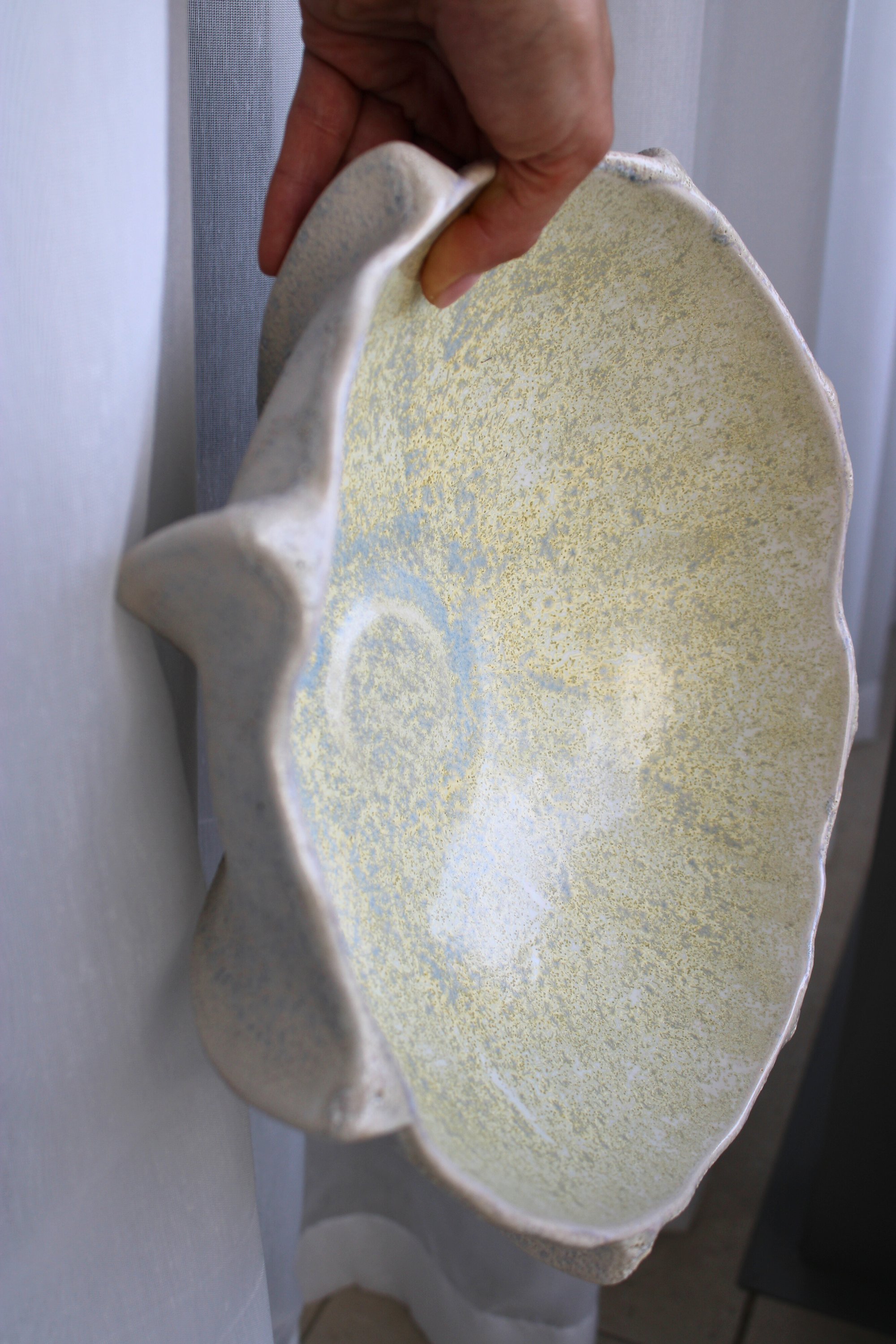 Hand-built in stoneware, Astra is designed as both a sculptural centerpiece and a functional bowl. Its softly folded rim catches light from every angle, creating a quiet, celestial presence on the table or shelf. Each piece is one of a kind.