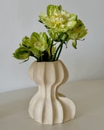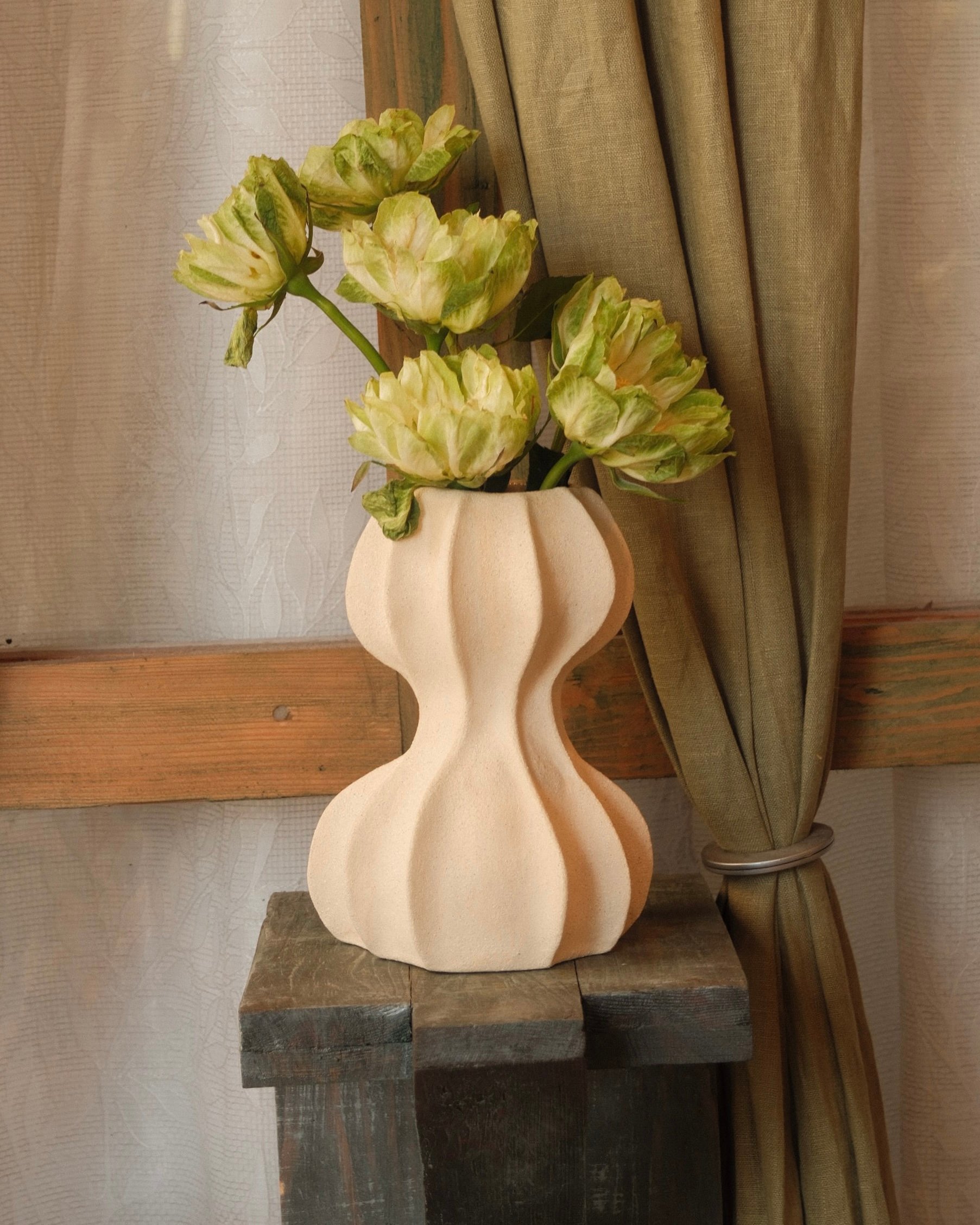 A sculptural stoneware vase shaped by soft, flowing curves and grounded volume.