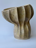 Hand-built in stoneware and fully glazed, this piece is water-tight and made to hold fresh flowers. It also stands beautifully on its own as a sculptural object. Each piece is one of a kind.